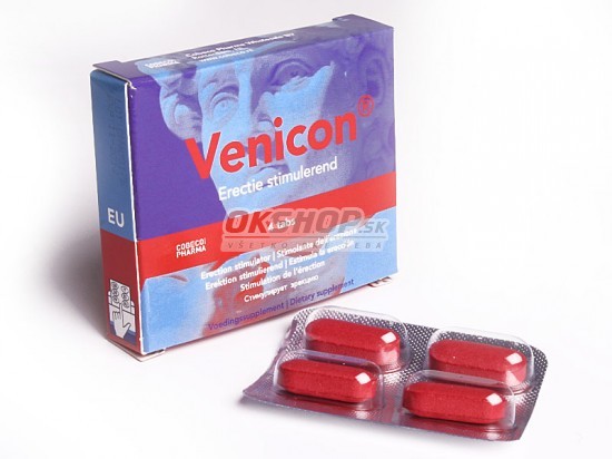 Venicon stimuluje erekciu a zvýšuje potenciu! Tisíce ľudí majú problémy s erekciou. Dôvody pochádzajú zo zlého fyzického alebo duševného zdravia. Venicon stimuluje prúdenie krvy, rozširuje cievy vedúce do penisu, ale tiež umožňuje uvolnenie. Venicon Vám pomôže stať sa lepším milencom! Obsah: 4 tablety. Jeho účinok pôsobí až po dobu 4 hodín! Zloženie: L-arginín, vápnik, Wpimedium sagittum, Erytroxylum catuaba, yohimbe extrakt 10%, ginkgo Exstract, vitamín B3. Dávkovanie: Mali by 1 alebo 2 filmom obalené tablety s vodou, pol hodiny pred pohlavným stykom. Denná dávka by nemala presiahnuť 2 tablety. Rešpektujte prosím dávkovanie!
