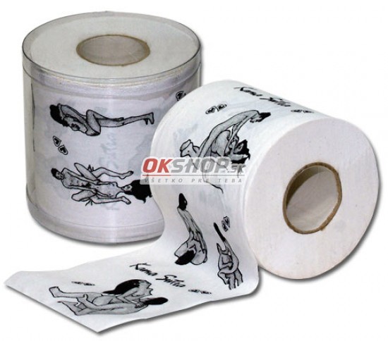 Dvojvrstvový toaletný papier s erotickými polohami.Papier je biely a postavičky sú čierne.
