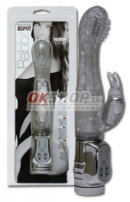 Multifunkčný vibrátor v nádhernom striebornom prevedení s trblietkami vás okúzli na prvý pohľad svojim designem a funkčnosťou. Je z vodeodolného gélového materiálu príjemne mäkkého a ohybného na dotyk. Jeho hlavička i stimulátor sú plne rotačné s voľbou troch intenzit vibrácií, od jemnej až po tú najsilnejšiu. Vibráciu i rotáciu hlavičky a stimulátora môžete navoliť zvlášť pomocou tlačidiel s LED osvetlením v spodnej časti vibrátora. Telo vibrátora je mierne zahnuté na stimuláciu bodu G. Hlavička je guľatá a naviac má stimulačné výstupky, ktoré vás budú príjemne dráždiť v tých najintímnejších miestach. Stimulátor na klitoris má tvar zajaca. Oba motorčeky sú veľmi výkonné a maximálne diskrétne. Zažite vzrušujúcu zábavu s týmto krásnym vibrátorom. V striebornom prevedení.