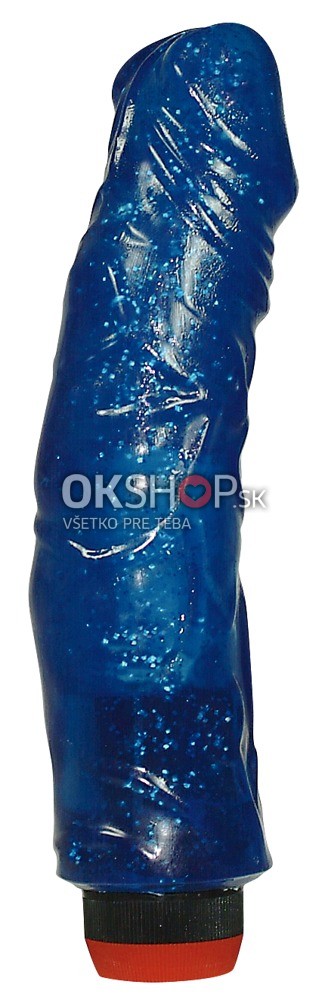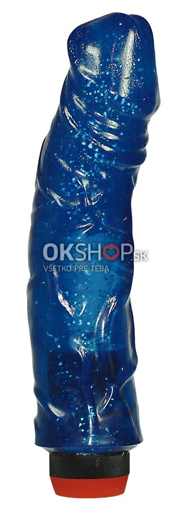 Tmavomodrý realistik vibrátor z jelly materiálu, 23 cm dlhý, Ø 4,5 cm.