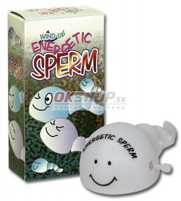 Hračka na naťahovanie, jazdí v tvare spermie.