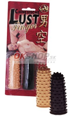 Ženská ako ženská, či je biela, žltá alebo čierna, každá to má rada a je jedno, či je to Európanka alebo Aziatka! Sú tu pre Vás v jednom balení dva čínske prstové nástavce s veľmi dráždivými nopmi. Je v čiernom a v telovo farebnom prevedení! Milé dámy – už sa nebudete musieť báť, že nedosiahnete vyvrcholenie!