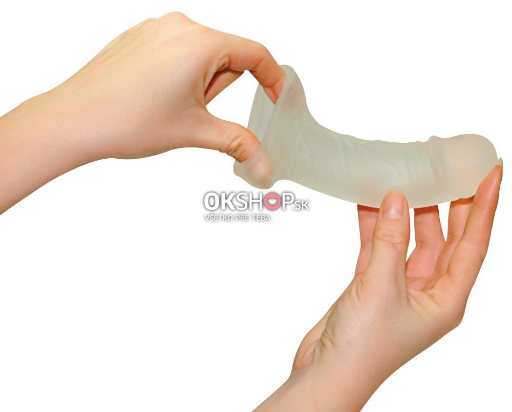 Priehľadný návlek, ktorý zväčší Váš penis zhruba o 3 cm a rošíří o 2 cm. Možnosť použitia aj na vibrátory. Jemné žilkovanie a tvarovaný žaluď. Možno používať aj ako kondóm pre viac použití.