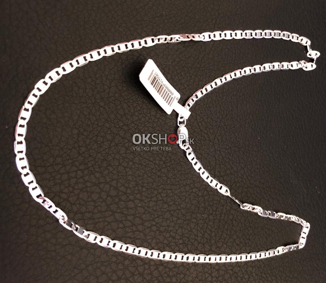 Strieborná retiazka s plochými očkami, na ktorých sú vyryté hviezdičky. Vzor valentina 0,8 č. 15. Ag 925/1000. Dĺžka 50 cm. Hmotnosť 7,29 g.
