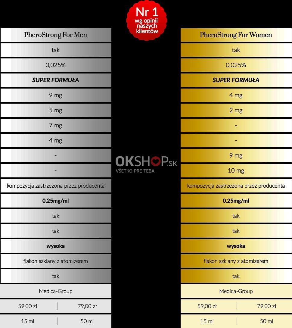Výsledky výskumu feromónov naznačujú, že môžeme ovládať našu sexualitu a správanie s ňou spojené. Feromóny PheroStrong pomôžu zvýšiť váš úspech u opačného pohlavia. Umožnia vám prelomiť bariéru plachosti a zvýšiť pravdepodobnosť flirtovania. Pomôžu vám byť otvoreným, sebavedomým a spoločenským človekom. Vzbuďte záujem - vďaka PheroStrong môžete zmagnetizovať celú svoju osobu. Táto sexuálna návnada vám tiež pomôže vyvolať vo vašej spálni vášeň a túžbu. Pomáhajú diverzifikovať a oživiť erotický život. Feromóny zvyšujú hladinu vzrušenia a odstraňujú hanbu. Väčšia otvorenosť vám poskytne obom nové intenzívne vnemy. Feromóny sa používajú na zvýšenie erotickej príťažlivosti a dokonca aj na liečenie porúch túžby a sexuálneho vzrušenia - upozorňuje profesor Zbigniew Lew-Starowicz - indukujú: pocit priťahovania k danej osobe, zaľúbenie, eufóriu a podporu orgazmu. Feromóny slúžia nielen na zvádzanie. Vďaka použitiu feromónov môžeme zlepšiť úroveň komunikácie v každej oblasti spoločenského života - aj v každodennom živote, v rodinných vzťahoch. Denne ovplyvňujeme ľudí okolo nás. PheroStrong uľahčí kontakt s inou osobou a spríjemní vám deň. Vďaka feromónom sú ľudia, ktorých ovplyvňujeme, k nám otvorenejší, ústretovejší a láskavejší. Vďaka tomu sa vy aj váš príjemca cítite lepšie a máte sa spolu dobre. Zároveň dosahujete svoj cieľ - zlepšenie vzťahu s partnerom, vypracovanie kompromisu, zloženie úspešného testu, bezstresová návšteva kancelárie a dôležitá a rýchla a pozitívna záležitosť.