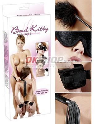 Bad Kitty Fetish Kit Black VelvetOkorenťe erotické hry nádychom fetish erotických praktík!Čierny 4-dielny fetish set obsahujúci:masku na oči,pár zápästných manžiet,bič (40 cm) ašteklivé dráždidlo (30 cm)Vás privedie k dosiaľ nepoznaným vzrušujúci...