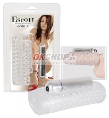 Transparentný a flexibilný návlek na penis so stimulačnými výstupkami +vibračná tyčka (9 cm dlhá, priemer 1,1 cm).