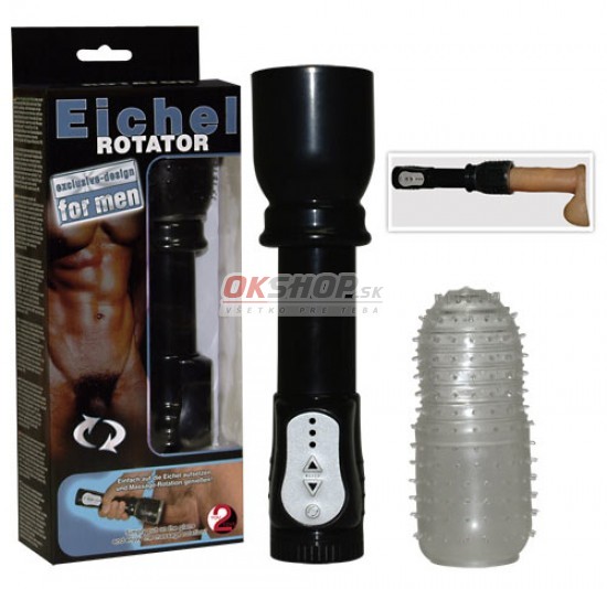 Čierny masturbátor na žaluď/penis so stimulačnou manžetou. Extra rotácia doprava - doľava sa dá nastaviť na 3 stupne rýchlosti. Hĺbka 7 cm, vnútorný priemer cca. 4,5 cm. Materiál: pevná kostra, silný plast, odopínacia manžeta z mäkkého silikónu. ...
