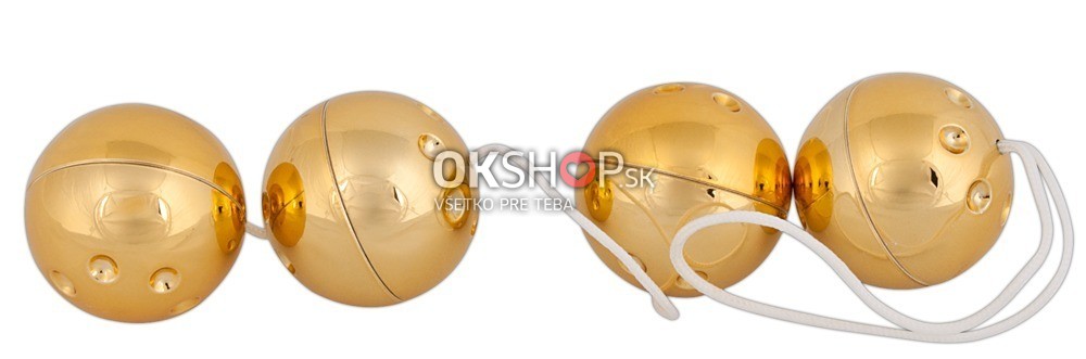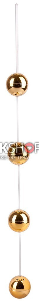 Venušine guličky - 4 ks pozlátených guličiek, ktoré sú spojené nylonovou šnúrkou vytvára elegantný reťaz pre vaginálne aj análne použitie.Milostné gule s elastickými vratnými remienkami Dá sa nenápadne nosiť v každodennom živote Posilňuje svaly...