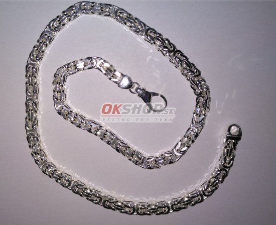 - strieborná retiazka, kráľovský vzor, o hmotnosti: 73,49gramov, rýdzosť 925/1000, puncované.