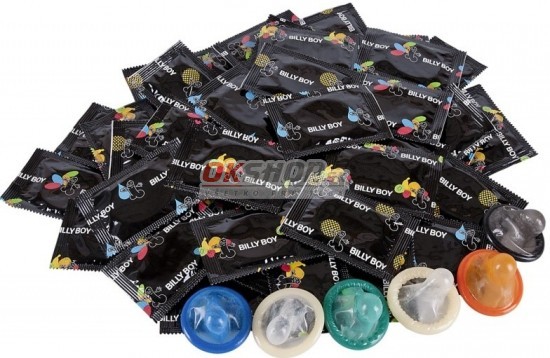 Maxi balenie značkových farebných veľmi obľúbených kondómov BILLY BOY. Anatomicky tvarované kondómy so špeciálnou lubrikáciou.