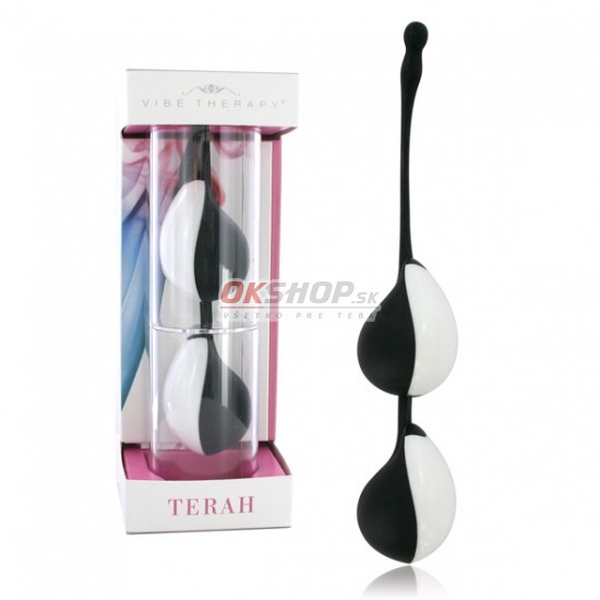 Spoločnosť Vibe Therapy, výrobca luxusných erotických pomôcok prináša na trh poslednú novinku - Venušine guličky Vibe Therapy Terah - sú vyrobené z vysoko kvalitného lekárskeho silikónu v kombinácii s ABS plastom, tento materiál Vám prinesie skvelé pocity pri zavádzaní aj pri použití. Venušine guličky vnútri obsahujú oceľovú guľôčku ktorá pri každom Vašom pohybe menia pozíciu vnútri guličky a vyvoláva ľahké vibrácie. Priemer každej guličky je 3,6 cm. Pre ten najlepší pocit z používania týchto guličiek odporúčame použiť lubrikačný gél a po použití ošetriť antibakteriálnym čističom.